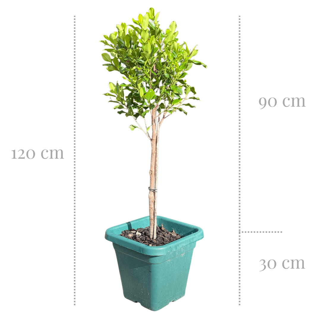 Ficus Tuffi is ideal for hedging due its dense foliage, interesting shades of green, ranging from pale green, to lime, to dark and resilient leaves which don't mind being trimmed back and shaped twice a year for maintaining sharp attractive hedges. Using standards for hedging helps give a formal look, and lower demand on roots.